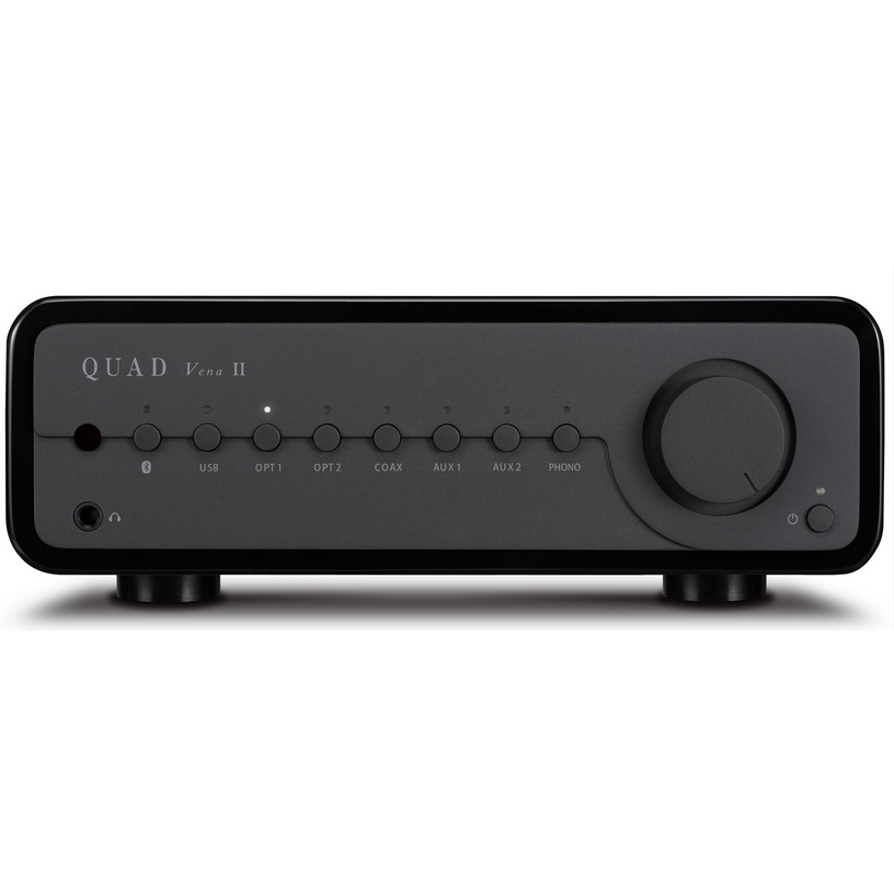 В дополнение к двум линейным входам усилитель получил качественный встроенный фонокорректор для MM-звукоснимателей. Таким образом, владельцам проигрывателей винила не придется использовать совместно с Quad Vena II внешний корректор. Аппарат получил и новый встроенный ЦАП на микросхеме ES9018K2M, сигнал на который может быть подан с оптических, коаксиального или USB-входов. Поддерживается обработка цифровых сигналов с параметрами до 32 бит / 384 кГц (PCM), а также DSD256. Еще одной существенной доработкой в модели Quad Vena II является выход на наушники. Теперь он реализован на отдельной схеме, за счет чего появилась возможность подключения наушников с любым стандартным значением импеданса.
